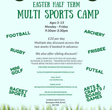 Our Multi-Sports Holiday Camps in Bristol offer a fun, active and inclusive experience for children during half-term and summer holidays. Led by our experienced mentoring coaches, each day is packed with sport, games and creative activities that build confidence, teamwork and a love for being active.